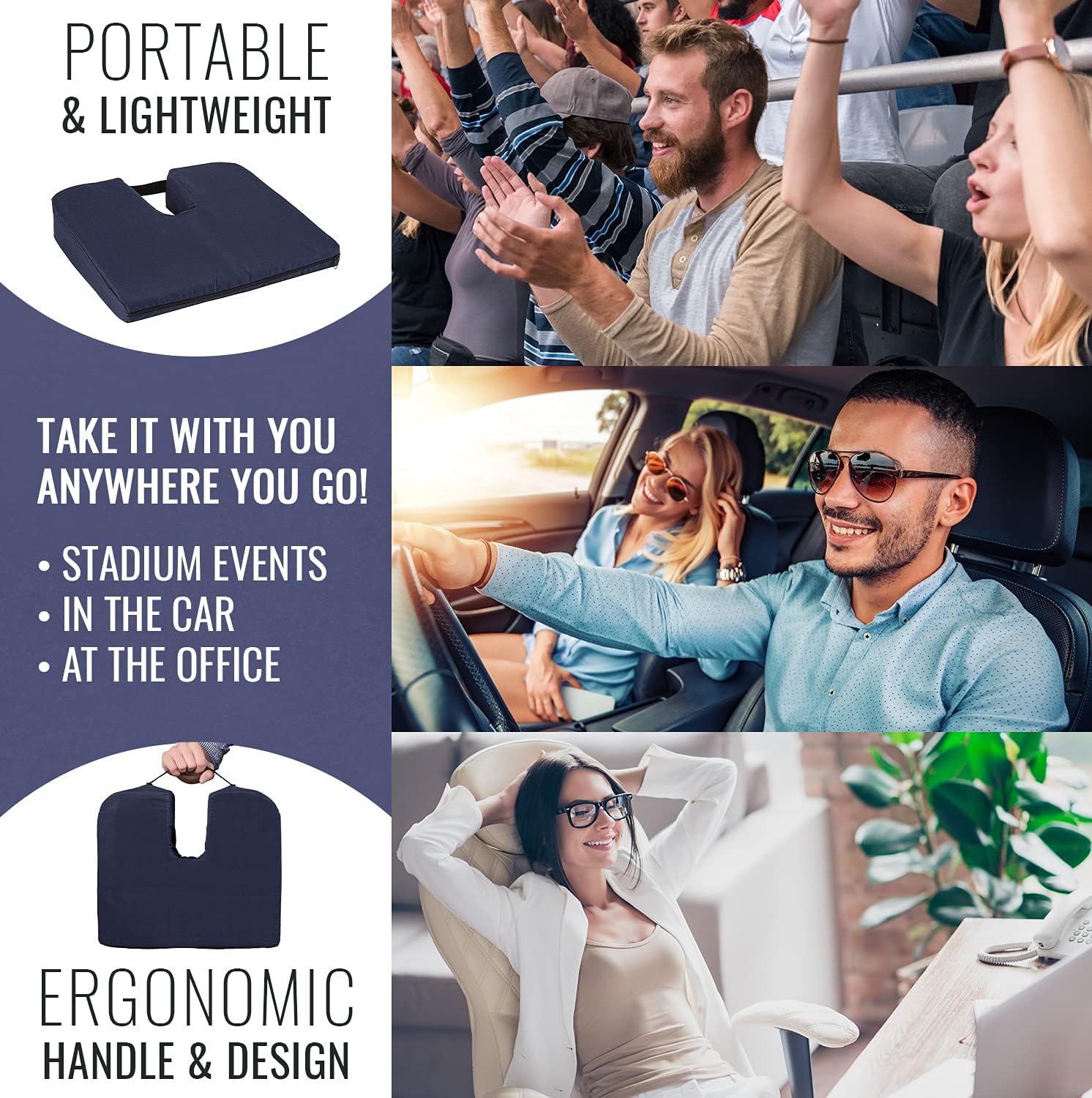 - Made from highly resilient foam that reduces the pressure on your tailbone area as you sit.