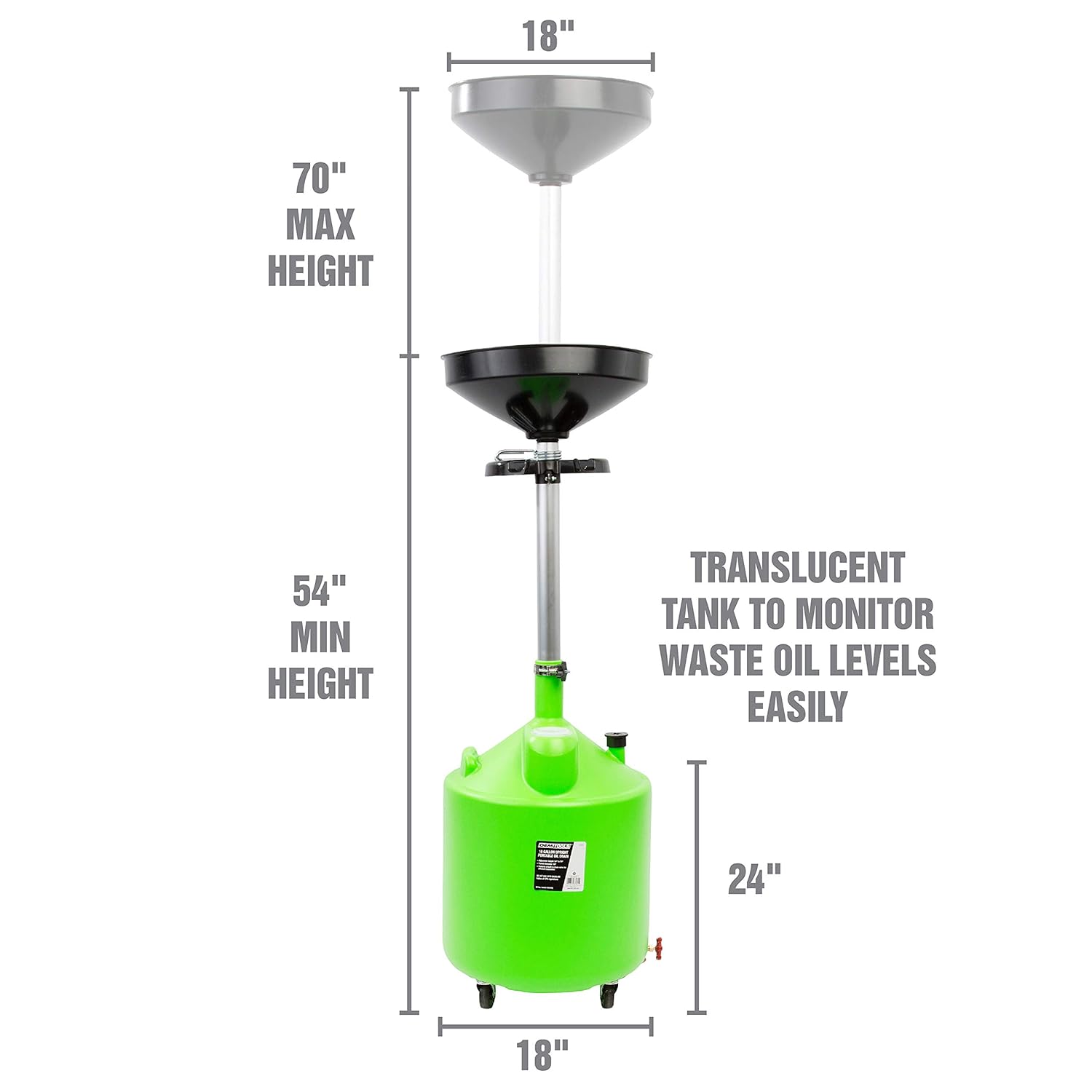 - Adjustable Drain Height: Easily position the oil drain pan for oil change on various vehicles with a height range of 54" to 70". Perfect for cars, trucks, and SUVs.