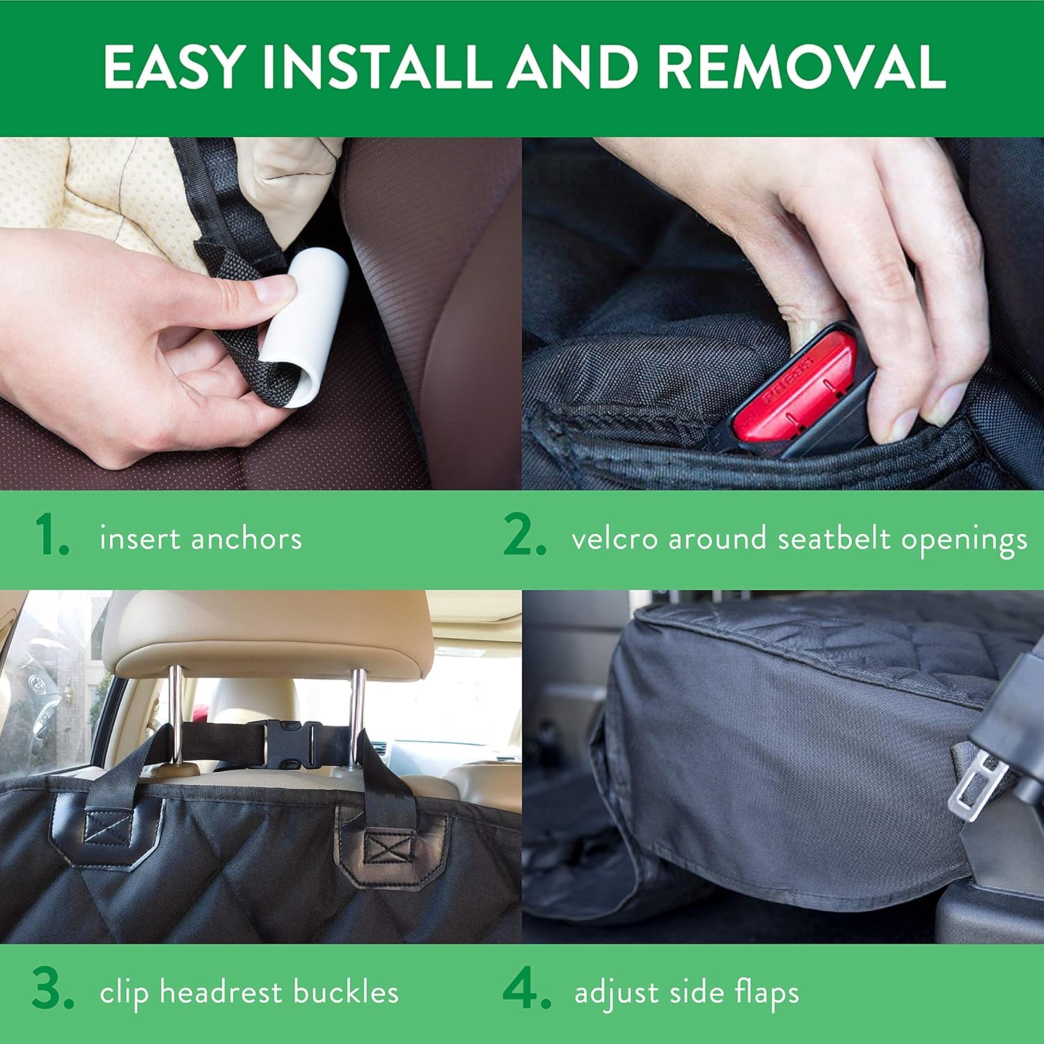 - šššššš§šš©š š£šš§ š£š„š¢š§ššš§šš¢š”: The Rear Seat Cover fits seamlessly over the interior of your vehicle, keeping your pet stable, secure, and protected on all your automotive adventures. The non-slip silicone backing, plastic grounding seat anchors, and silicone side pillows that tuck into backrests prevent any superfluous movement.