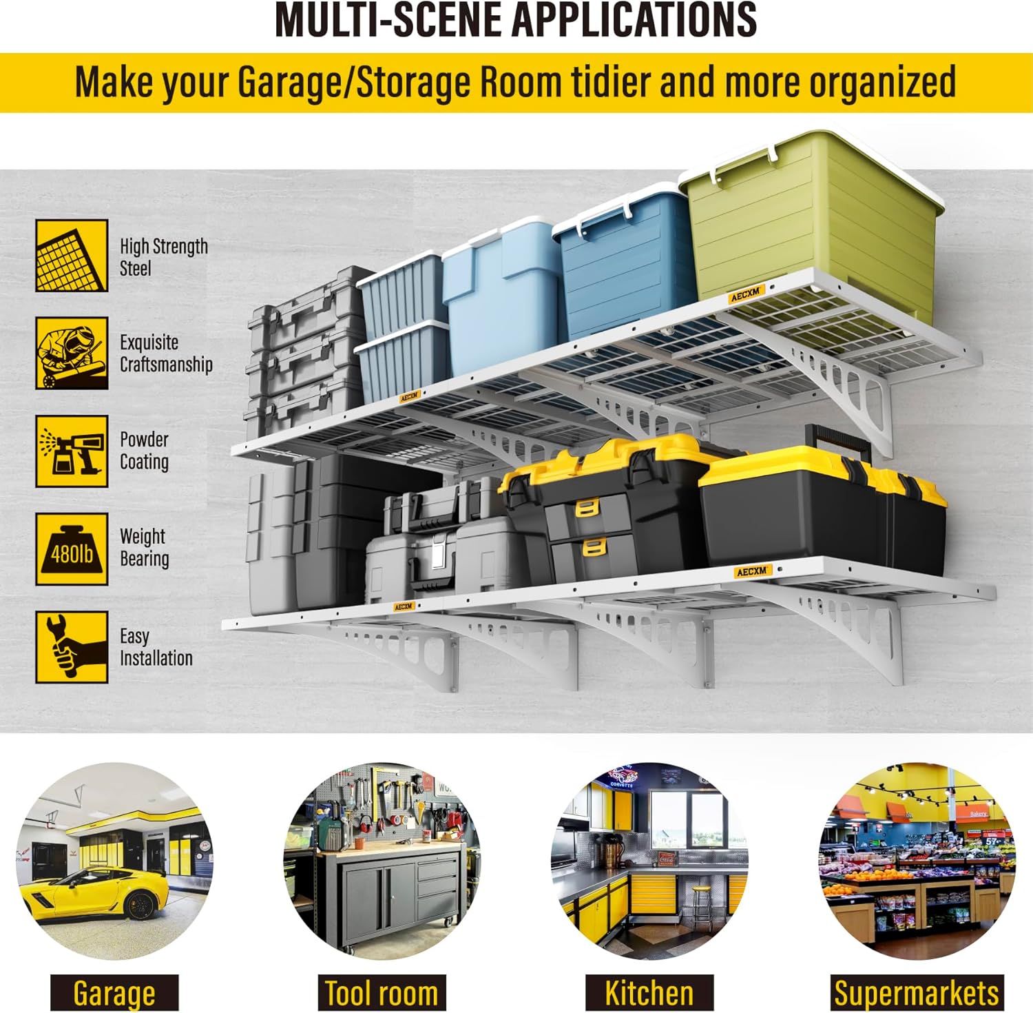 - Innovative Design: Unlike fixed-spacing systems, Aecxm garage storage shelves wall mounted feature sliding rail screws, allowing installation on wood studs spaced anywhere within the 36-inch garage shelf length. No more compatibility issues with uneven stud spacing