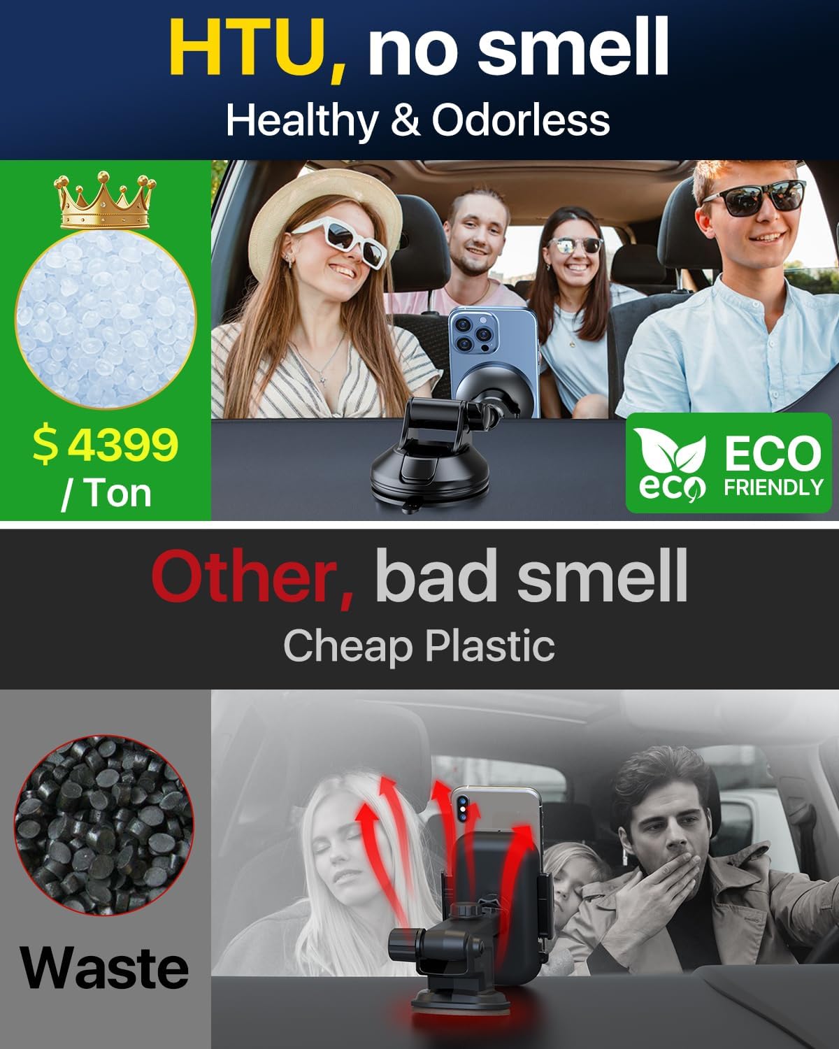 - [2025 Original Design, Magnetic Holder Expert Compatible for Magsafe] Optimizing 17 models and testing 156 kinds of material. HTU R&D team designs the [Strong Magnet, 360Β° Rotatable & Alloy Suction Cup ] windshield dashboard magnetic car phone mount for MagSafe. Industry-only made of Solid Aluminum Alloy & KING of Plastic is certified by CE, RoHS, CP65