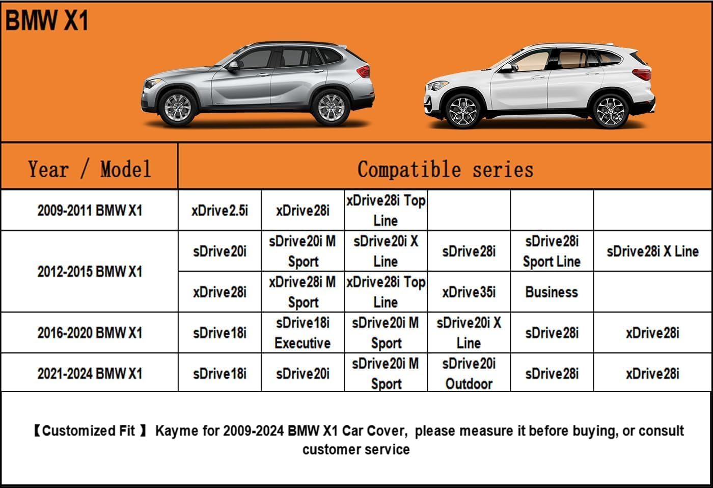 - ăSuitable forăâ Custom fit for BMW X1 (2009-2025). Come with a large enough portable bag to store your cover when you do not use