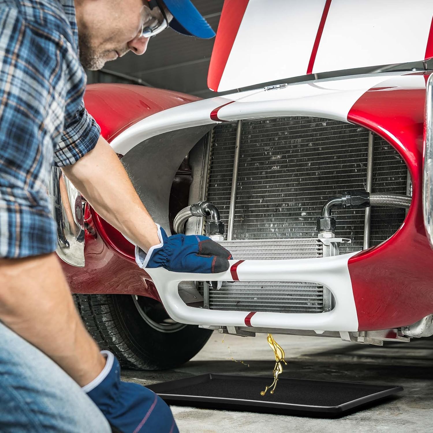 - Package IncludinPackage Including: our package contains 1 set of oil drip tray that measures 27 x 20 x 1.4 inches/ 67.5 x 51.5 x 3.5 cm and drip mat for garage car that measures 24 x 18 x 0.4/ 60 x 46 x 1 cm; The good combination can meet your use needsg: our package contains 1 set of oil drip tray that measures 27 x 20 x 1.4 inches/ 67.5 x 51.5 x 3.5 cm and drip mat for garage car that measures 24 x 18 x 0.4/ 60 x 46 x 1 cm; The good combination can meet your use needs