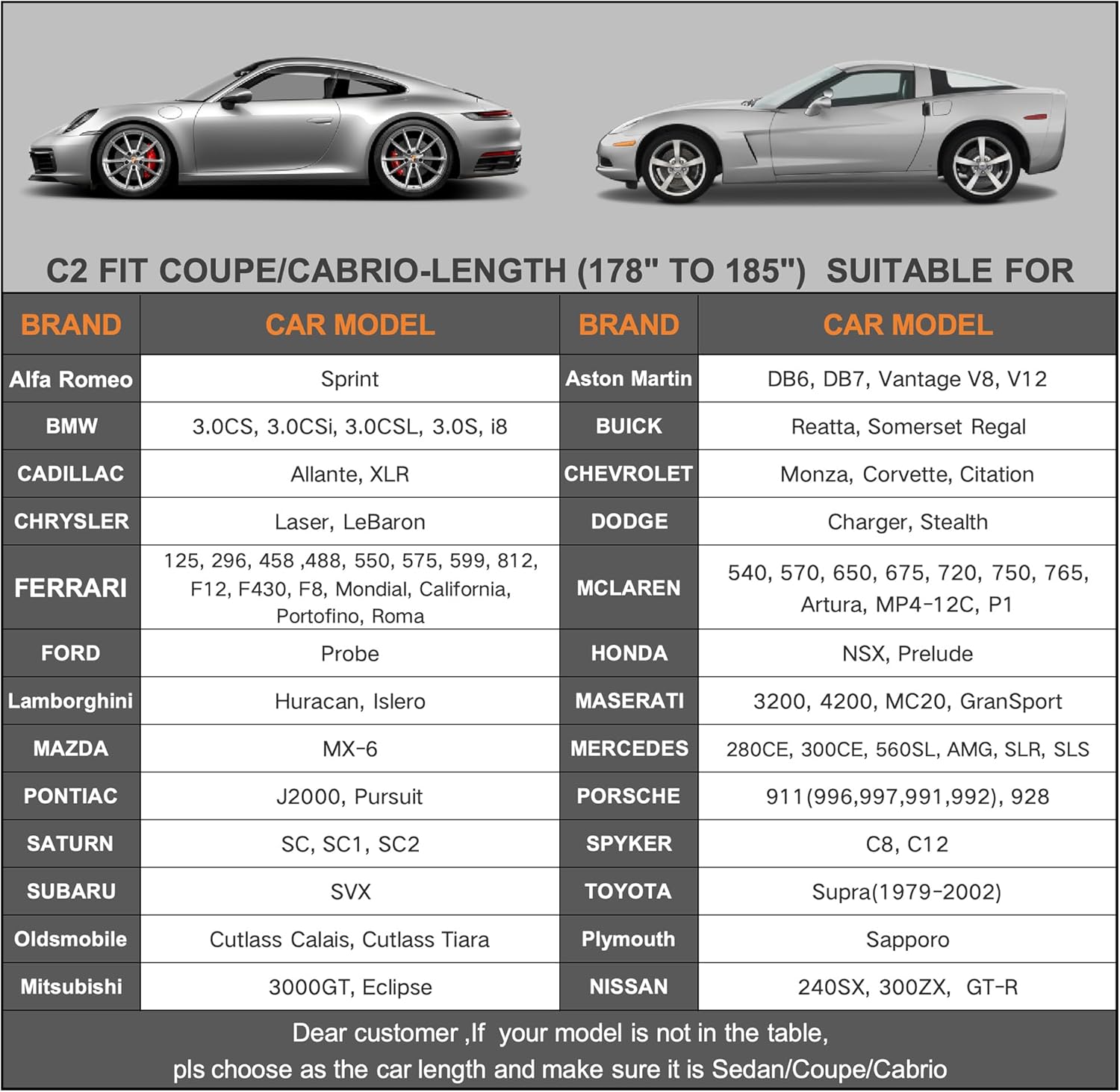 - ăDimension C2ăUniversal fit for sedan which length is 178-185 inch (Not for hatchback and SUV ). Suitable for BMW 3/4 Series, Mitsubishi lancer/Eclipse, Ferrari California, Lexus IS250C/IS350C etc.