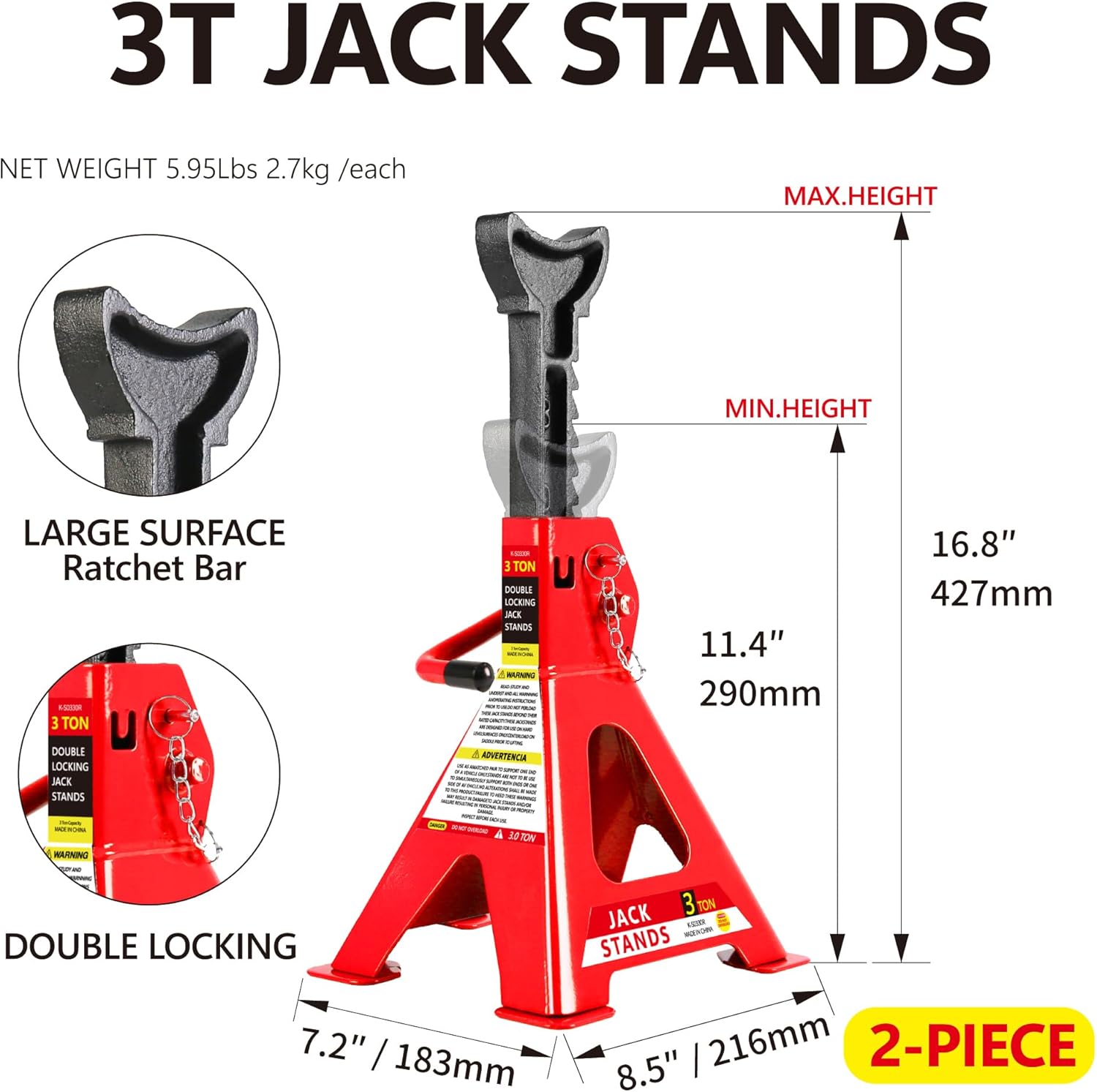 - 【Wide Lifting Range】 With an impressive lifting range of 3.3"-15.2", allows you to easily raise the jack to the desired height, no need for additional jack stands with safety bar in place. It is definitely an useful tool in any garage or workshop