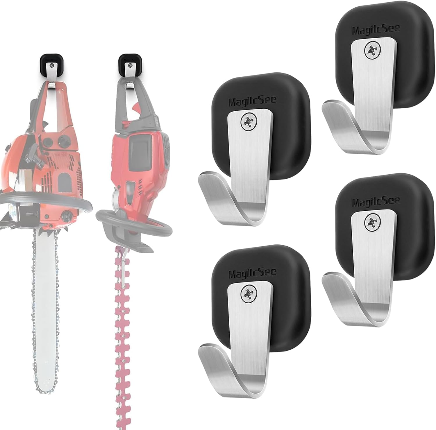 - Multipurpose Functionality: Hang and organize tools, shovels, paint cans, coats, hats, gym bags, mops, brooms, keys, kitchen utensils, wreaths, Christmas lights, and more, creating extra storage space wherever needed.