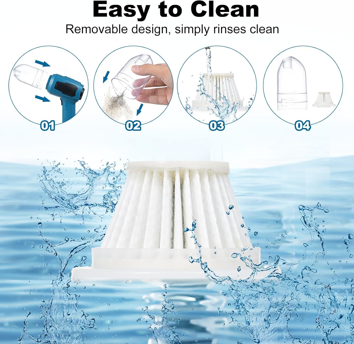 - ăDual Washable & Reusable filterăMulcort car vacuum cleaner equipped with two HEPA filters. Both filters are designed to be washable and reusable, ensuring long-lasting use and easy maintenance. Work to maximize the vacuum's cleaning performance while minimizing the need for frequent filter replacements. Mulcort cordless hand vacuum cleaner makes your cleaning tasks more convenient.