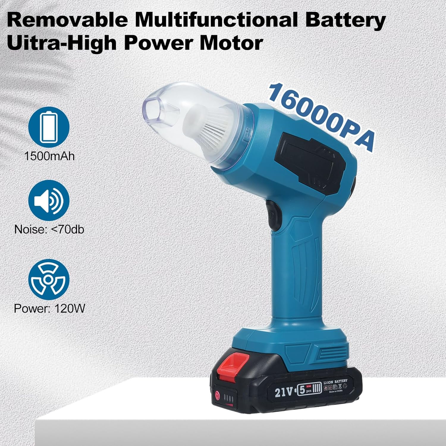 - ăVersatile UseăMulcort small vacuum cleaner cordless excels in suction, blowing, and inflating functions. It provides powerful suction for thorough cleaning of car interiors, office spaces, and more. Cordless Car Vacuum Cleaner included blowing, with a maximum airflow of 700L/min, efficiently removes dust and debris from delicate surfaces, such as keyboard keys and office equipment. The inflating function is perfect for inflating swim rings, inflatable boats, and balloons. With accessories including an inflating nozzle, floor brush, cleaning brush, and blowing nozzle, this vacuum meets various cleaning needs and offers comprehensive versatility.