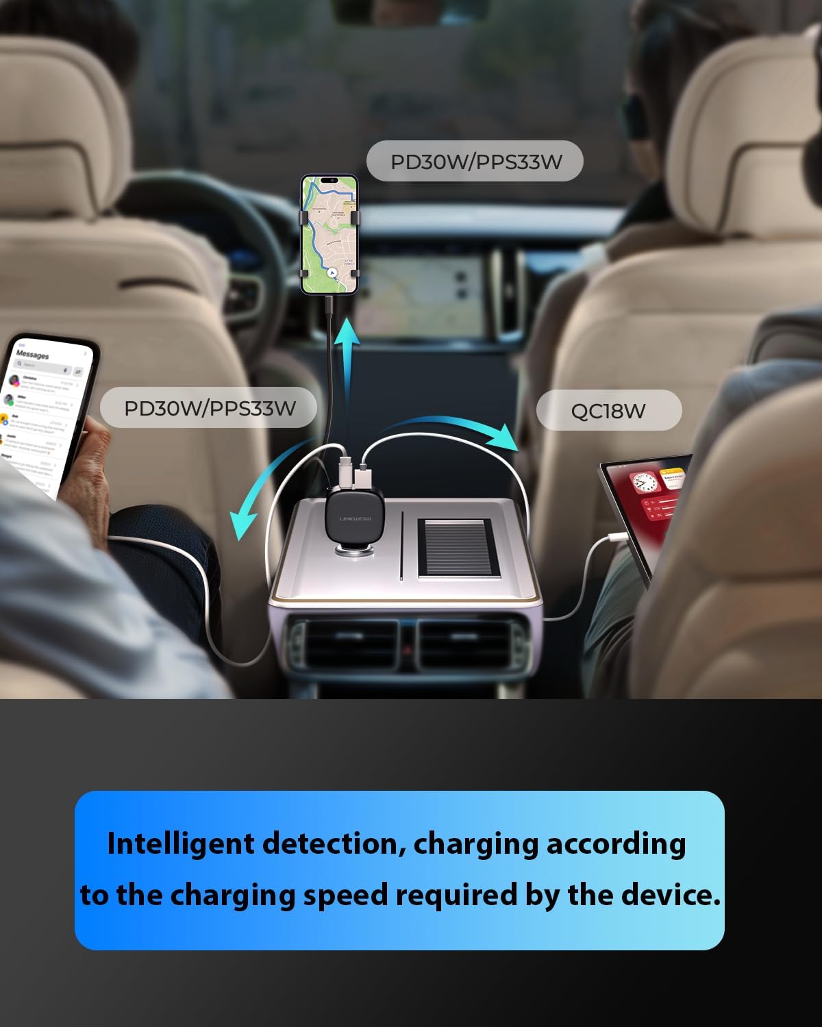 - ăMust-Have Car Charger for Family Road Tripsă Triple-Device Fast Charging: Powers action cameras via retractable Type-C cable while dual USB ports simultaneously charge parents' phones and kids' tablets.Smart Adaptive Charging: Auto-detects Apple/Samsung devices and intelligently selects optimal PD/QC fast charging protocol.Universal Device Compatibility: Fully supports Type-C car fast charging and iPhone car flash charging, compatible with laptops, smartphones and tablets.