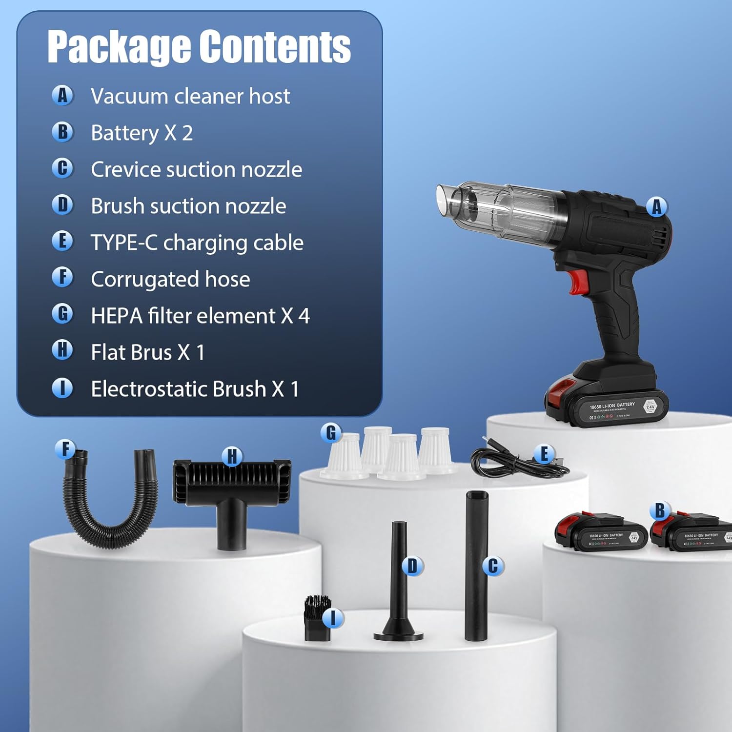- 🌟Convenient & Portable: Designed for ease of use, this vacuum cleaner features 2pcs detachable lithium batteries for extended cleaning sessions. It also includes an LED lighting function, so you can clean those hard-to-reach spots anytime, anywhere.