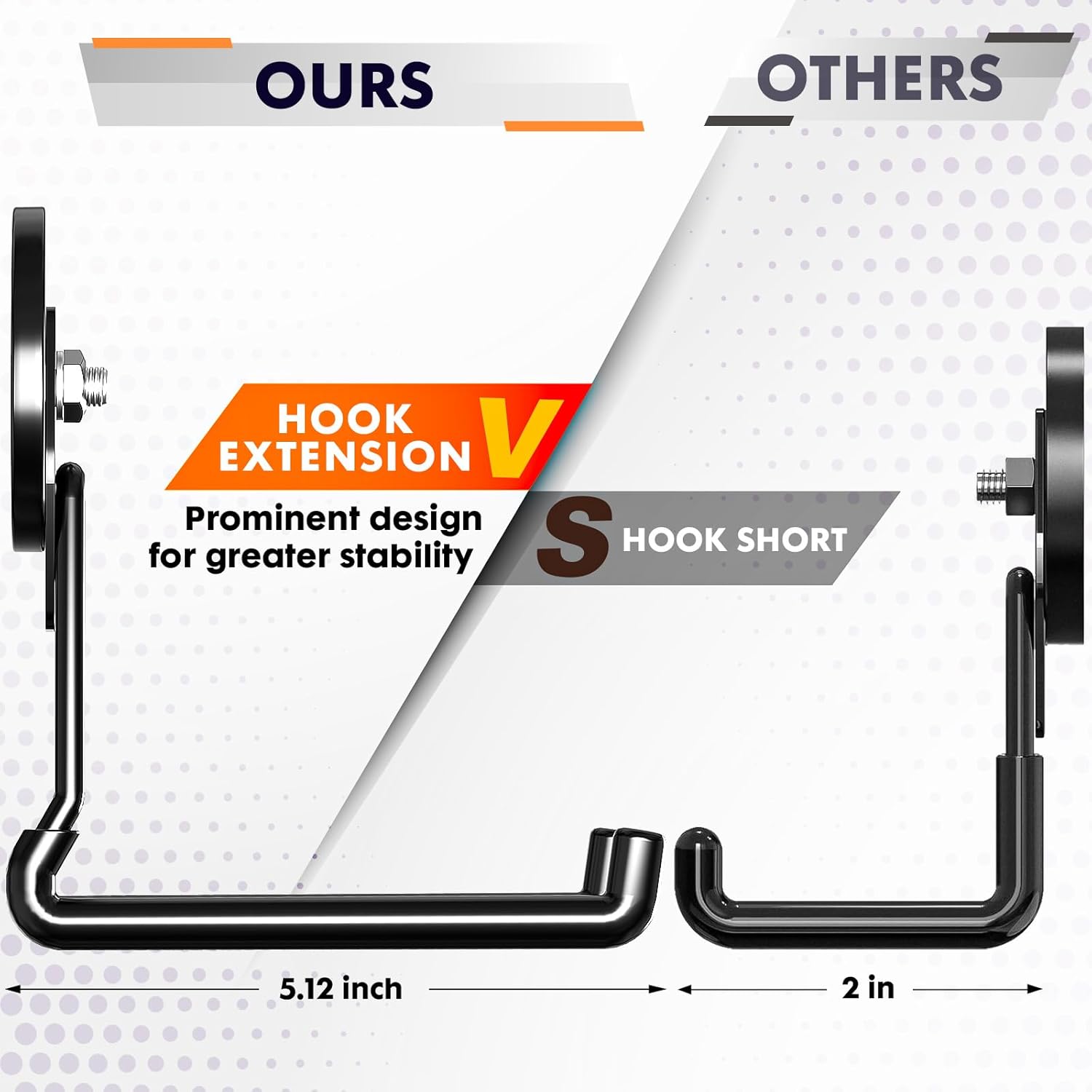 - 【Protruding Hook Design for Enhanced Stability】Designed with a raised, back-angled hook, this structure keeps items from sliding off. The protruding curve not only enhances balance but also distributes the weight more evenly, reducing strain on the magnetic base and ensuring long-term stability under load.