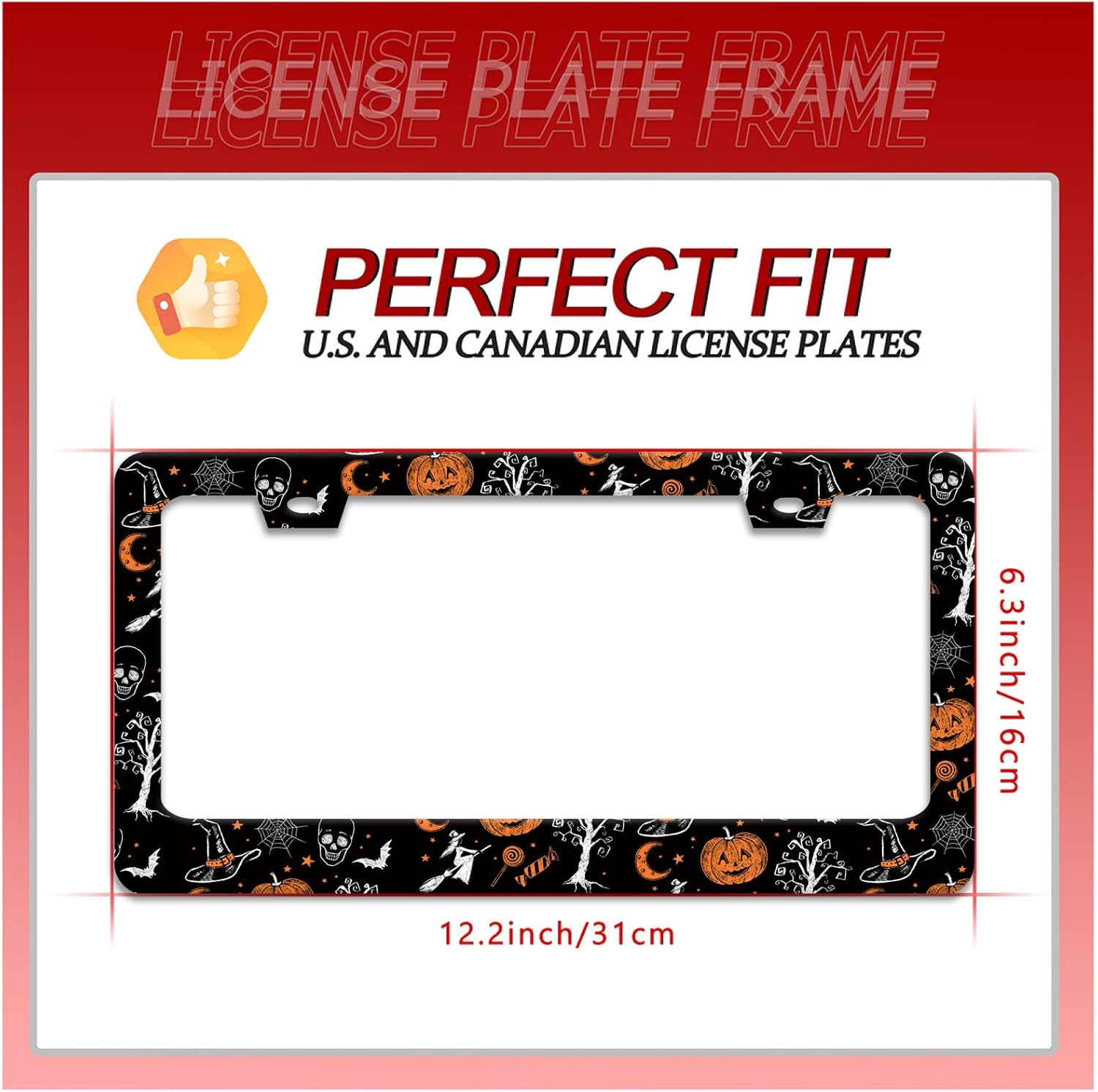 - Us & Canada Standard Sizes: The license plate frame measures 12.2 x 6.3 inches and fits standard US and Canadian license plate frames. Make your car more stylish, stand out and stand out from the crowd.