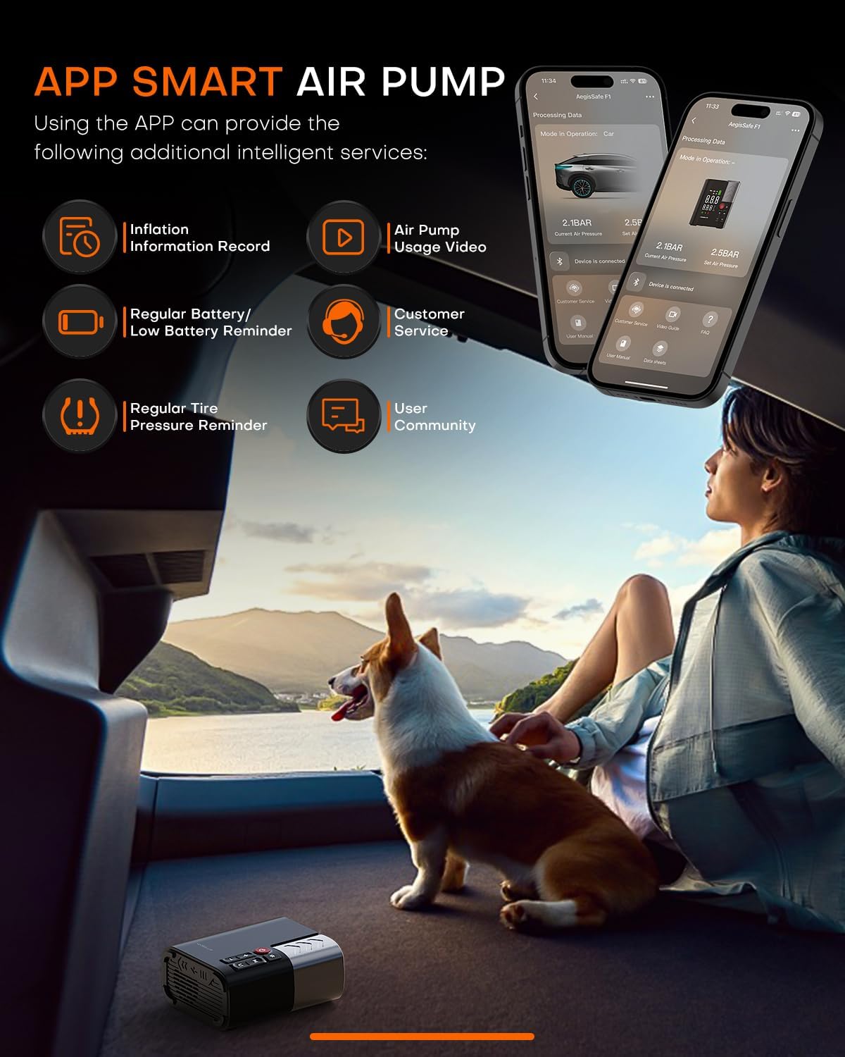- 📱【APP Smart IoT】The exclusive APP for you can intuitively understand the status of the car tire air pump portable, provide air pump information records, status reminders, warnings, usage instructions and customer service, etc., which will help you solve your troubles in use and get more comprehensive protection. ❗Tips:Not using the APP will not affect the normal use of the air pump.